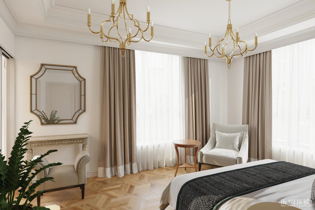 Проект, в декоративных приёмах которого прослеживается отсыл к Сталинскому Ампиру. Мы продолжили его, вслед за архитектурой дома, так как эта квартира расположена в одноимённой секции современного ЖК в городе Сочи.